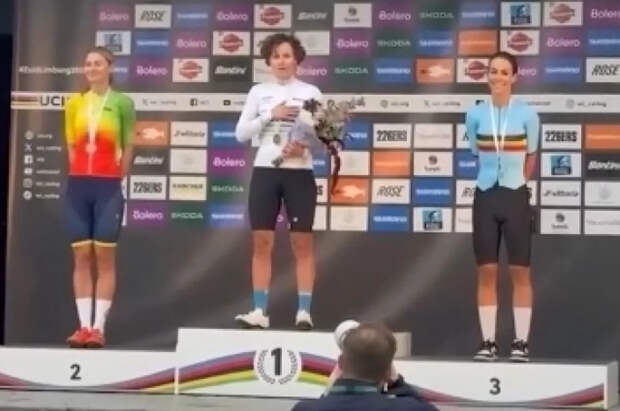 Чемпионка мира по грэвел-велоспорту Дарья Правилова спела гимн России поверх «Оды к радости» Людвига Ван Бетховена, которая прозвучала в качестве композиции для нейтральных спортсменов.