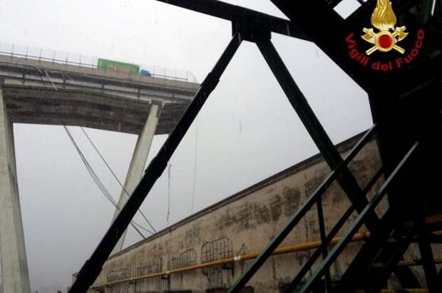 Рядом с итальянским городом Генуя на автостраде A10 обрушилась часть автомобильного моста Моранди. Помимо десятков человеческих жертв, обрушение моста привело к повреждению газовых труб и утечке. Также повреждены около десяти автомобилей.