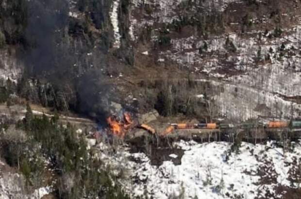 Грузовой состав с опасными веществами сошёл с рельсов в американском штате Мэн, сообщает телеканал Fox 23.