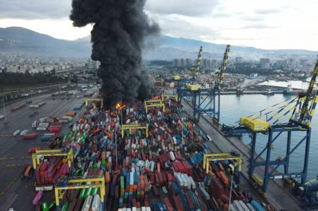 6 февраля в турецкой провинции Кахраманмараш произошли два сильных землетрясения магнитудой более 7,5. После подземных толчков в порту Искендерун среди контейнеров начался пожар, который вскоре распространился на большую площадь.