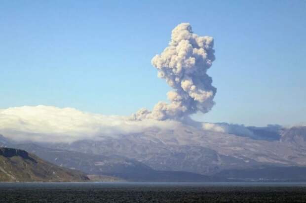 Его высота составляет 1156 метров.Эбеко относится к древним затухающим вулканам. При этом с 2016 года он регулярно выбрасывает столбы пепла.