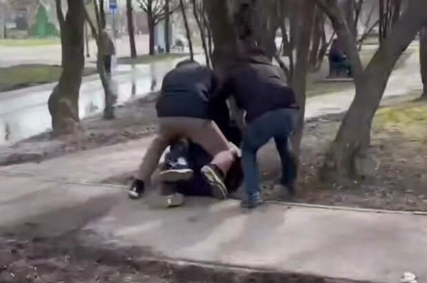 На кадрах запечатлен непосредственно процесс задержания молодого человека — силовики валят его на землю на улице, одевают наручники и ведут к служебному автомобилю.