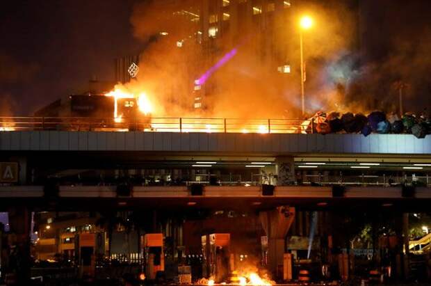 Сообщается, что ранее демонстранты в Гонконге подожгли мост, соединяющий кампус Политехнического университета со станцией метро. Чтобы разогнать протестующих, правоохранители использовали слезоточивый газ.
