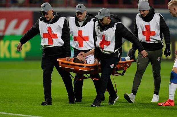 Футболист не смог подняться с поля и его унесли на носилках