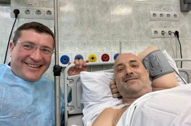 Раненый в результате теракта писатель Захар Прилепин опубликовал первое фото из больницы — совместный снимок с главой Нижегородской области Глебом Никитиным, который пришел навестить его.