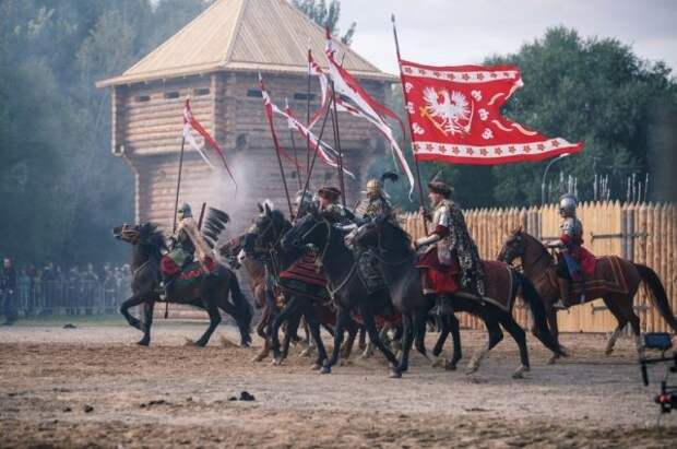 В XVII воины не скрывались за кустами от заряда мушкетов и не рыли себе окопы от пушечных ядер. Поэтому мы видим, как стройные шеренги пикинёров идут во весь рост на врага с копьями, а за ними так же открыто следует конница. Весь бой длится не более часа. После нескольких неудачных атак Речи Посполитой, войско Московского государства штурмом берёт форт неприятеля и поднимает над ним русское знамя. Победа! Контратака польской конницы ни к чему не приводит. И в небе раздаются праздничные залпы пушек. Победители подкидывают шапки, поздравляют друг друга, а потом строятся в колонну и уходят с импровизированного поля боя под песню о Марусе.