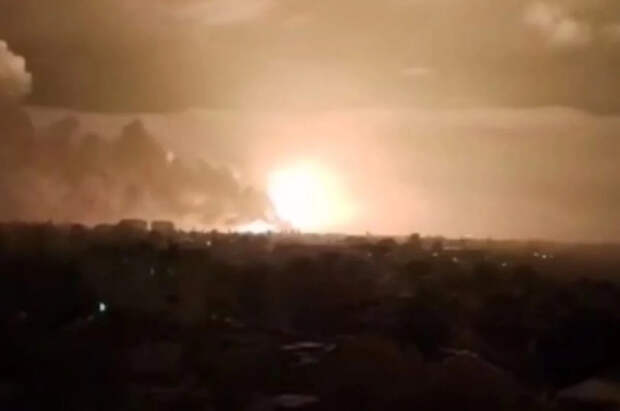 В Сети появились снятые очевидцем кадры мощного взрыва в районе города Чугуев Харьковской области.