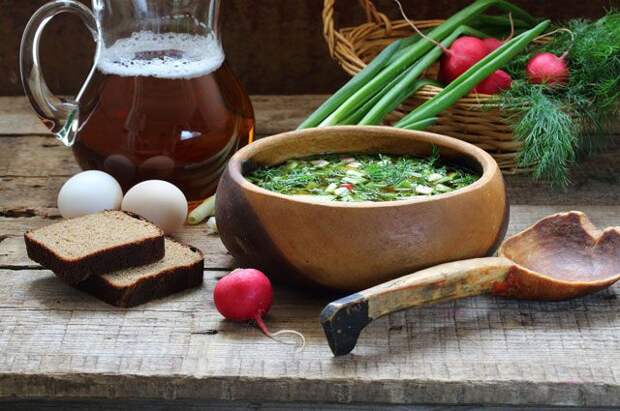 Далеко не все любят зеленый лук, но для окрошки он жизненно необходим. Иначе это получится просто какой-то супчик, а не настоящая окрошка. Лук лучше всего брать очень свежий, в идеале — с грядки. Он должен быть хрустящим и сочным. Иногда его даже немного толкут, чтобы отдал свой острый сок супу. Лук — это базовый ингредиент холодного супа и без него окрошка не получится.