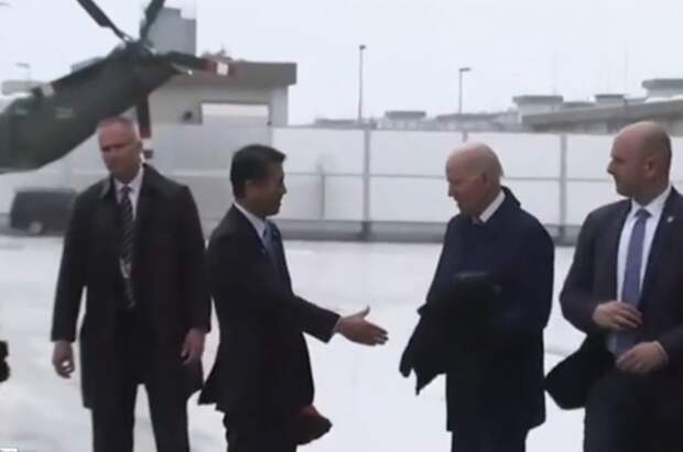 На кадрах Байдену, который прилетел в Японию во время дождя, не удалось во время спуска по трапу открыть зонт. Он остался под мышкой американского лидера, который начал общаться с представителями японских властей. Несколько человек подняли зонты над мокнущим под дождем президентом, до того как он смог открыть свой.