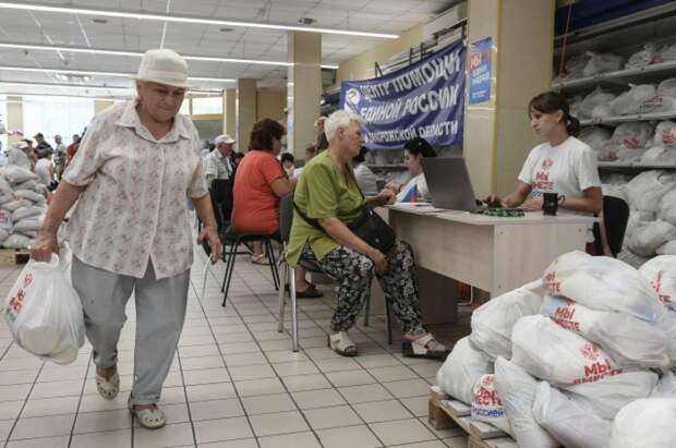 Мирные жители получали в этом здании продукты, бытовые вещи и лекарства.Известно, что ЧП случилось после обнародования итогов опроса о поддержке гражданами региона референдума о вхождении в состав РФ.