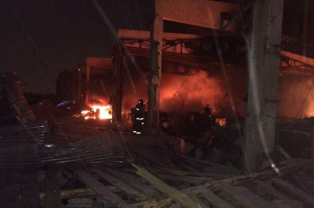 Пожар произошел в одноэтажном здании цеха по производству пластиковых изделий. К моменту прибытия пожарных огонь охватил 100 кв. метров, крыша здания рухнула вовнутрь. Через два часа возгорание было ликвидировано.
