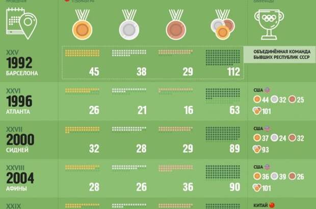 Смотрите в инфографике АиФ.ru, какое количество медалей Россия завоёвывала на летних Олимпийских играх.
