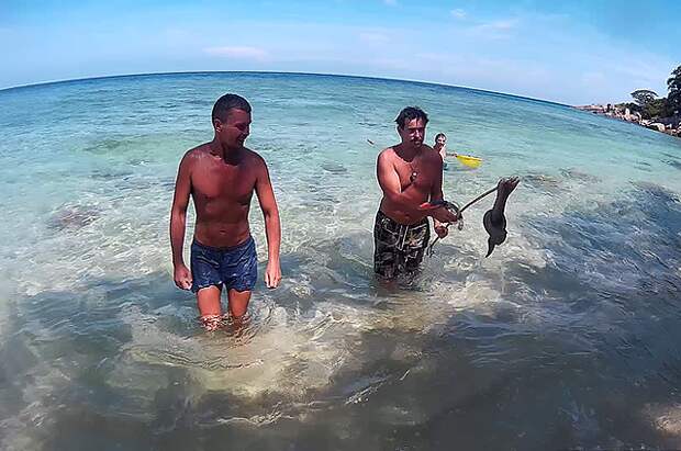 «Один раз я поймал мурену. Это довольно опасная морская хищная рыба, нередко нападающая на дайверов и способная нанести серьёзные травмы. Я охотился под водой с самодельным гарпуном. Увидел большую чёрную голову, выплывающую из-под камня. Тут же проткнул её гарпуном и прижал ко дну. Когда мне сказали что это за тварь, стало страшновато. Общими усилиями удалось оглушить её и вытащить на берег. Она была около метра в длину и под два кило веса. Старания оправдалась: мурена была очень вкусным деликатесом», — вспоминает пермяк Сергей Каюрин.