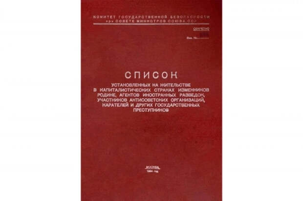 На сайте ФСБ России с 29 ноября началась публикация рассекреченных страниц «Красной книги КГБ». Официальное название этого секретного издания 1964 года - «Список установленных на жительстве в капиталистических странах изменников Родины, агентов иностранных разведок, участников антисоветских организаций, карателей и других государственных преступников».