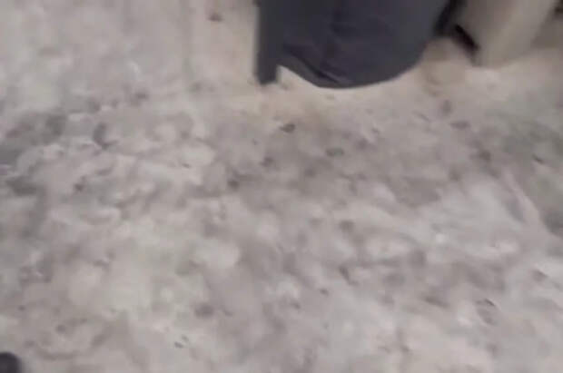 На кадрах мужчина показывает черные разводы на бетонных ограждениях и на полу на террасе.