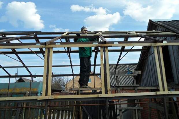 – Не так давно мне довелось возводить теплицу для добрых знакомых. «Зелёный домик» на их участке должен был вписаться строго в промежутке между гаражом и сараем.