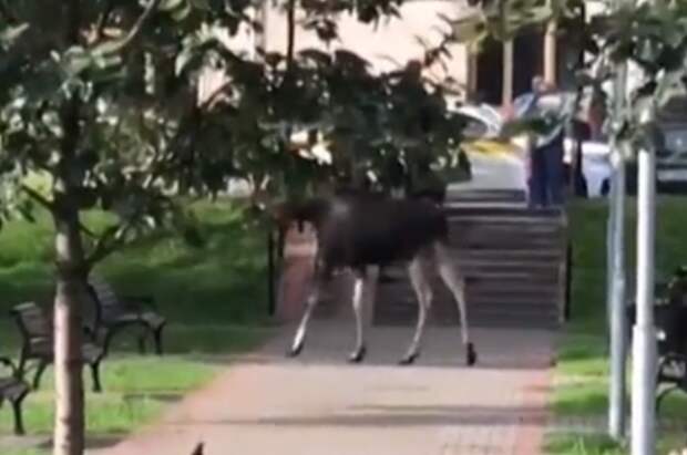Жители Москвы запечатлели на видео лося, который утром в воскресенье гулял по скверу в районе Варшавского шоссе.