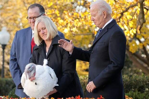 Американский лидер Джо Байден в преддверии Дня благодарения по традиции помиловал двух индеек, доставленных в Белый дом, в этом году птиц назвали Желе и Арахисовое масло.