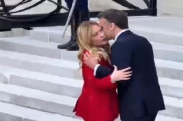 Напомним, встреча Мелони и Макрона в Париже вызвала скандал из-за излишне теплого приема со стороны французского президента. На опубликованных кадрах видно, как Макрон бросается с объятиями к вышедшей из автомобиля Мелони. Французский президент поцеловал гостью в обе щеки, а затем заключил ее в объятия и долго не отпускал.
