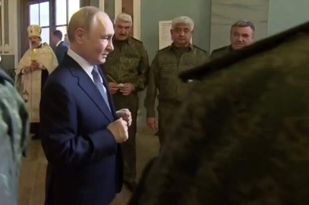 Российский лидер Владимир Путин в ходе рабочей поездки в Санкт-Петербург вместе с руководством Минобороны, Генштаба и командующими группировками войск в зоне СВО посетил Петропавловский собор.