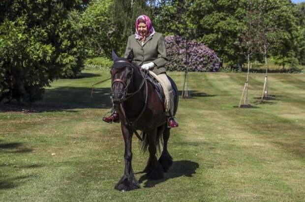 Она была запечатлена при занятии верховой ездой на территории Виндзорского замка. Королевская чета переехала туда из Букингемского дворца в марте на фоне распространения коронавируса.