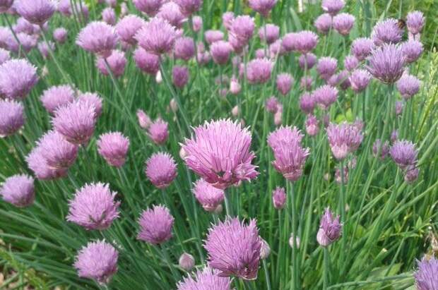 Весной посадки этого многолетнего лука ощетиниваются длинными тонкими листьями.