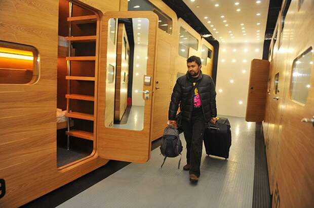 Так называемый «капсульный» отель (ул. 1-я Тверская-Ямская, д. 27) удивляет «космическим» дизайном и эргономичностью маленьких комнат-кают: в каждой с удобством помещается кровать, лампа, стол и шкаф. Есть номера на 1, 2 и 3 постояльцев, удобства на этаже.
