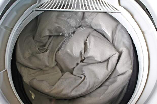 Пуховые одеяла небольшого размера и подушки можно стирать в стиральной машине в режиме деликатной или ручной стирки без отжима, без добавления кондиционера. Большие одеяла стирают вручную. Для стирки надо использовать жидкое средство для деликатных тканей. Чтобы пух не свалялся в комки, положите в барабан специальные мячики для стирки.