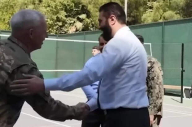 В конце видеозаписи запечатлено, как аш-Шараа пожимает командующему международной коалицией и хлопает его по плечу.