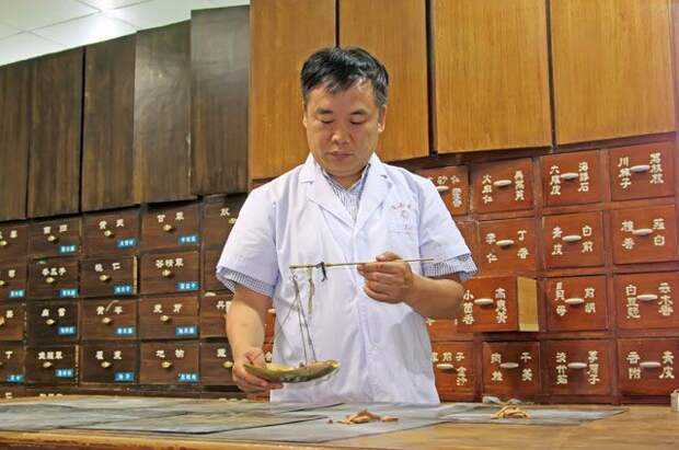 – Так же, как и в любой другой: для начала пациент приходит на консультацию. Стоит она недорого. Ему прописывают, скажем, набор трав. Обычно он не заваривает их дома самостоятельно, а идёт в больничную аптеку, где эти лекарства готовят и выдают в коробочках в виде перемолотого порошка. Дома можно их растворить в тёплой воде и выпить. Либо покупателю выдают уже готовый отвар трав в пакетах типа наших молочных. Вечно занятые и много работающие китайцы сейчас больше предпочитают питаться в кафе, чем готовить еду дома. Это быстрее. Так же они относятся и к лечебным травам.