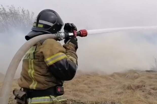 Уточняется, что сообщение о возгорании поступило пожарным вечером 7 мая. Прибывшие на место происшествия пожарные обнаружили, что загорелась сухая трава. При этом из-за сильного ветра огонь быстро охватил большую территорию, уточнили в МЧС.