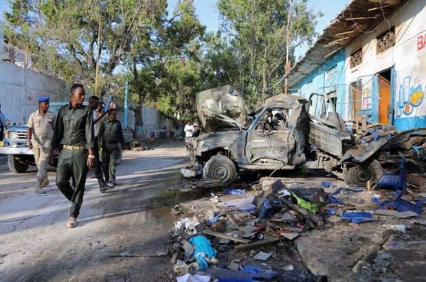 В субботу вечером террорист-смертник привел в действие взрывное устройство, спрятанное в машине недалеко от дворца президента Сомали. После этого боевики взяли в заложники людей, которые находились в гостинице. Ранее сообщалось о 23 погибших.