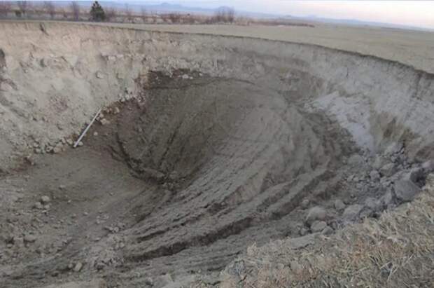 Недалеко от населенного пункта Карапынар в турецкой провинции Конья после землетрясений обнаружили воронку глубиной почти в 15 метров и диаметром 100 метров.