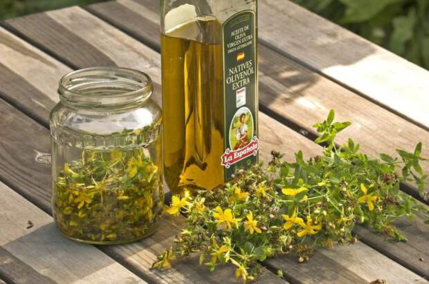 150 г травы зверобоя залейте 0,5 л любого нерафинированного растительного масла, поставьте на водяную баню и кипятите полчаса. Дайте настояться в течение 3 дней, процедите, отожмите сырьё. После тёплой ванны втирайте тёплое масло в больные места. Курс лечения 10–12 дней, затем нужно сделать такой же перерыв и при необходимости повторить курс.