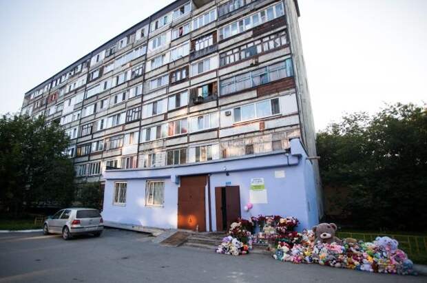Местные жители устроили стихийный мемориал у дома, где жила девочка. Туда несут цветы и игрушки.