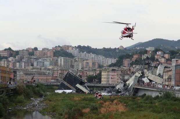 Автомобильный мост на трассе А10 рядом с Генуей обрушился во вторник около полудня. Пролет длиной по меньшей мере 100 метров упал на стоящие под ним здания. На мосту при этом находились автомобили.