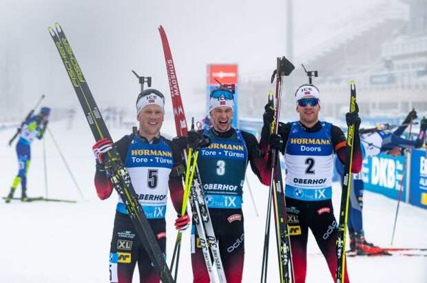 Норвежские биатлонисты заняли весь пьедестал почета в гонке преследования на пятом этапе Кубка мира в германском Оберхофе.