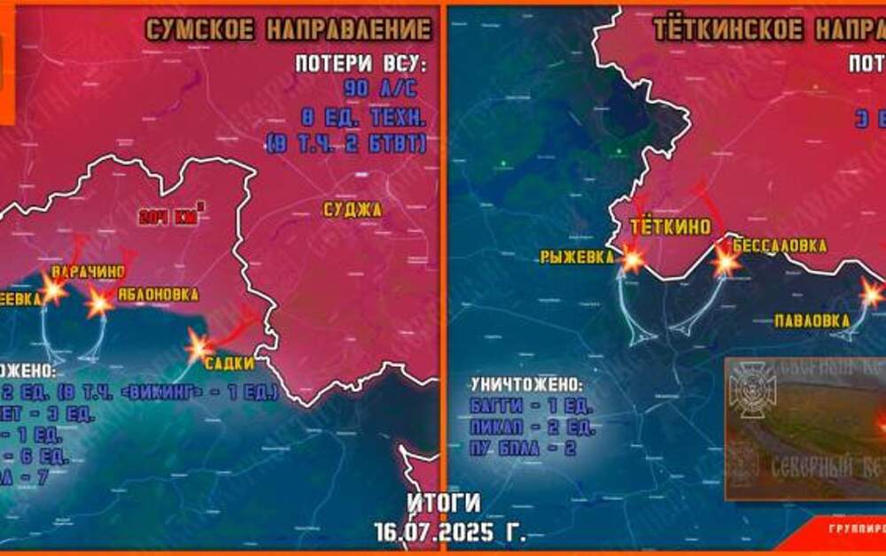 На участке российско-украинской границы в Курской области — в районах населённых пунктов Тёткино и Глушково — зафиксированы очередные попытки прорыва диверсионных групп противника. Об этом сообщают военные корреспонденты и представители Группировки войск «Север». По их информации, противник